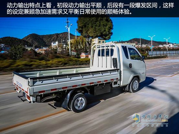 此次试驾,我们还是将车辆动态表现放在首位。与乘用车不同的是,乘用车更在意车辆加速成绩,车辆能否在油门踏板踩下的第一时间“撺”出去。而商用车更在乎的是车辆的平顺动力输出特性,稳定顺畅的动力输出方式更适合商用车型。